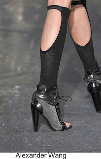 Socks have been all over this spring's runway shows for 2010… Socks with high heels, knee high socks, scrunched down socks, silk socks, cutout socks, you name it. I am a huge fan of this look in fact I have been known to sport a few socks with a bright colored espadrille in my time, and it’s not a new detail . In the 90’s both Dolce & Gabbana and Prada put black socks on their models showing their proud heritage of the Italian grandma (Nona) or the Sicilian traditional look. And among all the designers focusing on the chic little knick-knacks of sock ideas the one that stands out the most is the socks with open toe sandals that really made the outfits stand out. The Sock look might not be practical for many to wear but there is definitely something so subtly chic, sexy and stylish about adding a pair of socks to a great outfit and a Fabulous pair of shoes, I'm in.
